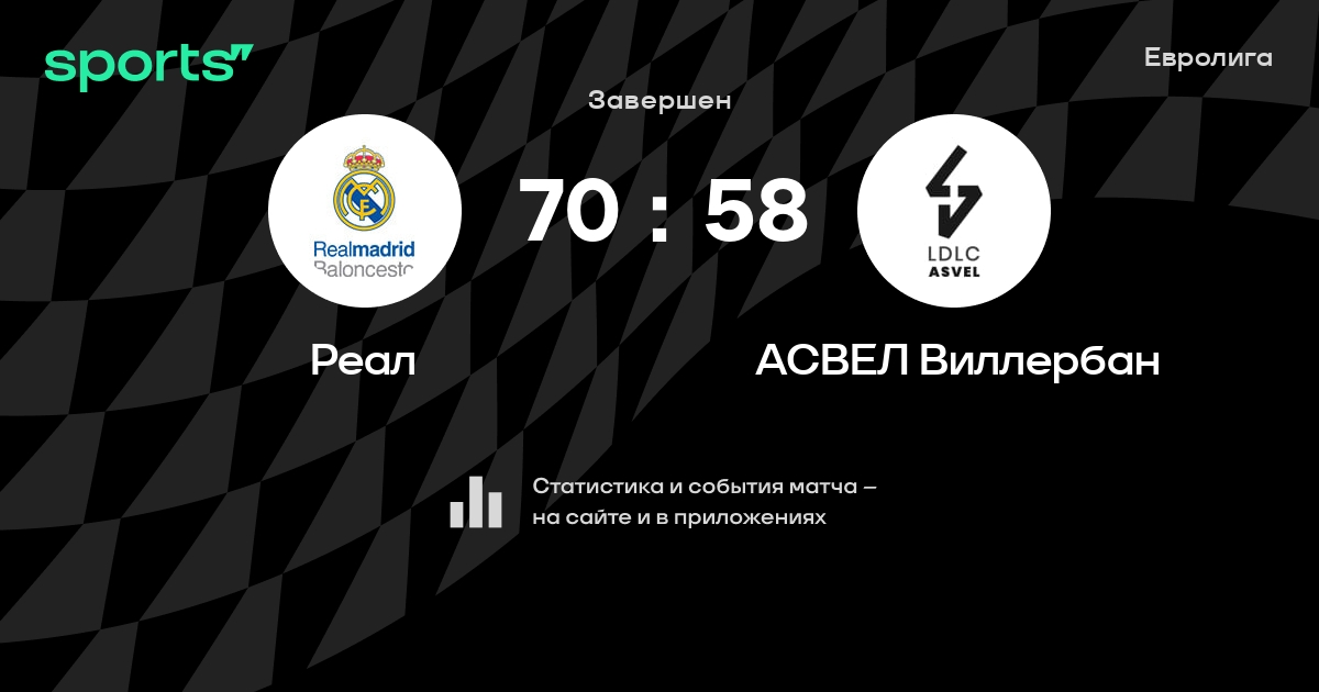 В прошедшем матче в рамках турнира Евролига состоялась встреча команд Реал - АСВЕЛ Виллербан в городе Мадрид (Испания) на стадионе Мовистар Арена (вместимость - 15000)