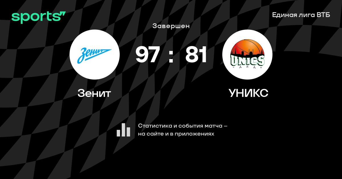 В прошедшем матче в рамках турнира Единая лига ВТБ состоялась встреча команд Зенит - УНИКС в городе Санкт-Петербург (Россия) на стадионе КСК Арена (вместимость - 7120)