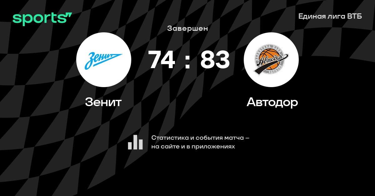 В прошедшем матче в рамках турнира Единая лига ВТБ состоялась встреча команд Зенит - Автодор в городе Санкт-Петербург (Россия) на стадионе КСК Арена (вместимость - 7120)