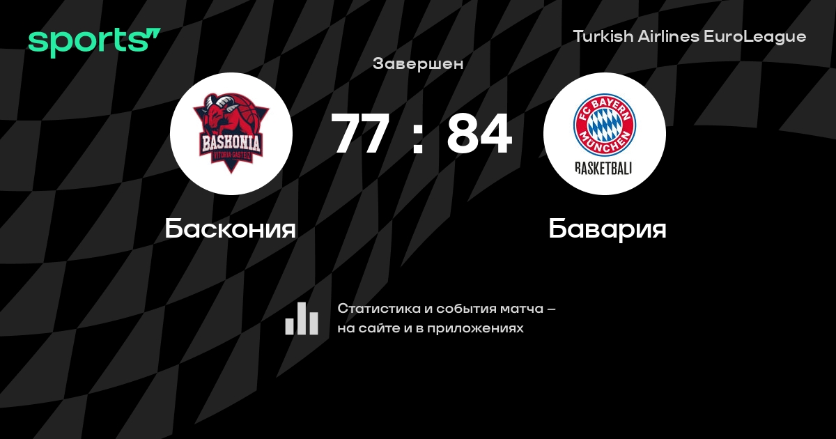 В прошедшем матче в рамках турнира Turkish Airlines EuroLeague состоялась встреча команд Баскония - Бавария в городе Витория (Испания) на стадионе Фернандо Буэса Арена (вместимость - 9717)