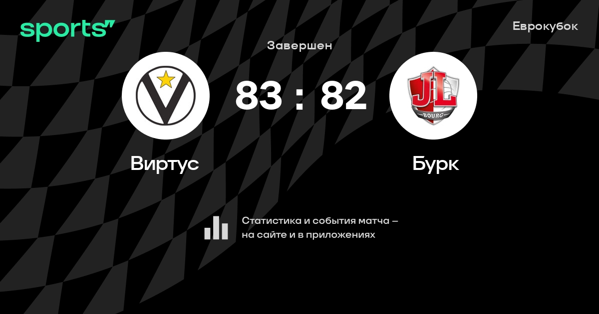 В прошедшем матче в рамках турнира Еврокубок состоялась встреча команд Виртус - Бурк в городе Болонья (Италия) на стадионе Виртус Арена (вместимость - 9980)