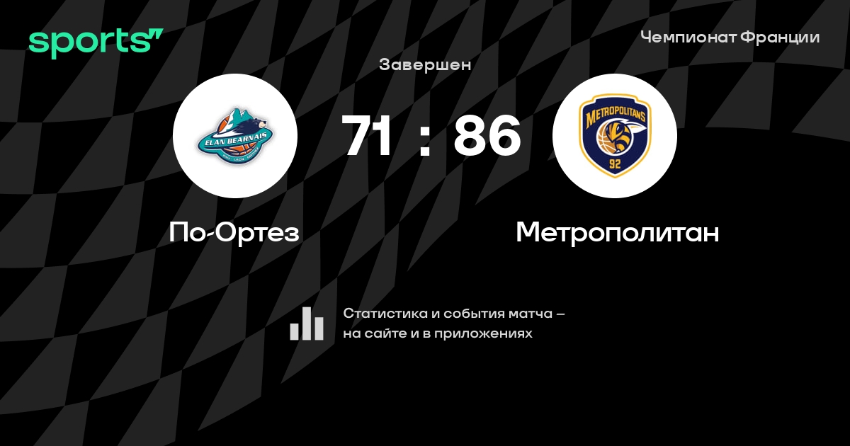 В прошедшем матче в рамках турнира Чемпионат Франции состоялась встреча команд По-Ортез - Метрополитан в городе Nanterre на стадионе Palais des Sports