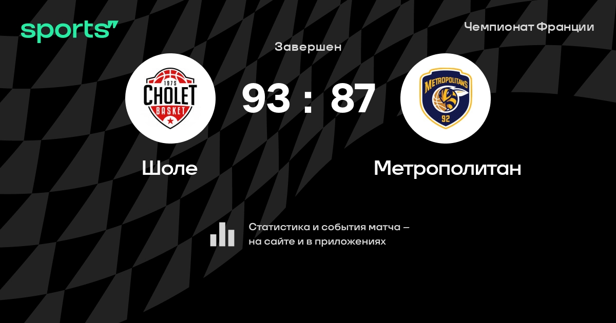 В прошедшем матче в рамках турнира Чемпионат Франции состоялась встреча команд Шоле - Метрополитан в городе на стадионе Salle de la Meilleraie