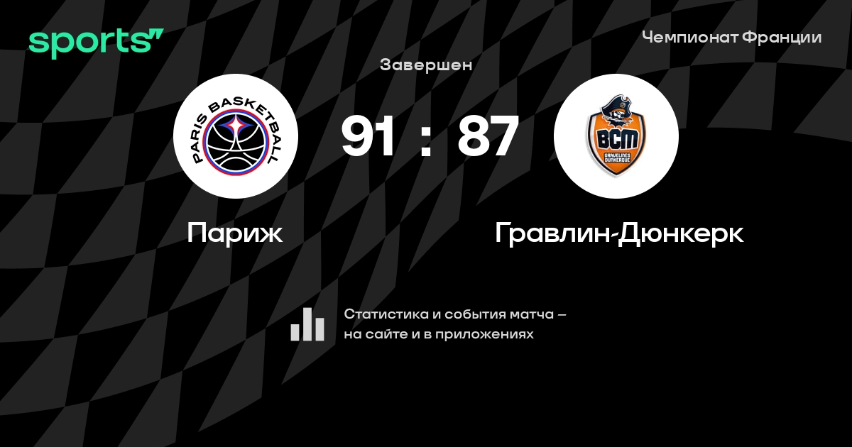 В прошедшем матче в рамках турнира Чемпионат Франции состоялась встреча команд Париж - Гравлин-Дюнкерк в городе на стадионе Halle Georges-Carpentier