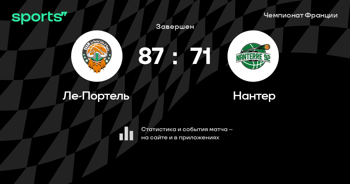 В прошедшем матче в рамках турнира Чемпионат Франции состоялась встреча команд Ле-Портель - Нантер в городе на стадионе Le Chaudron