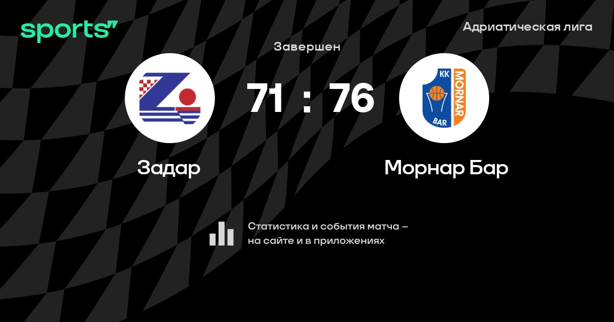 В прошедшем матче в рамках турнира Адриатическая лига состоялась встреча команд Задар - Морнар Бар в городе на стадионе Dvorana Krešimir Ćosić