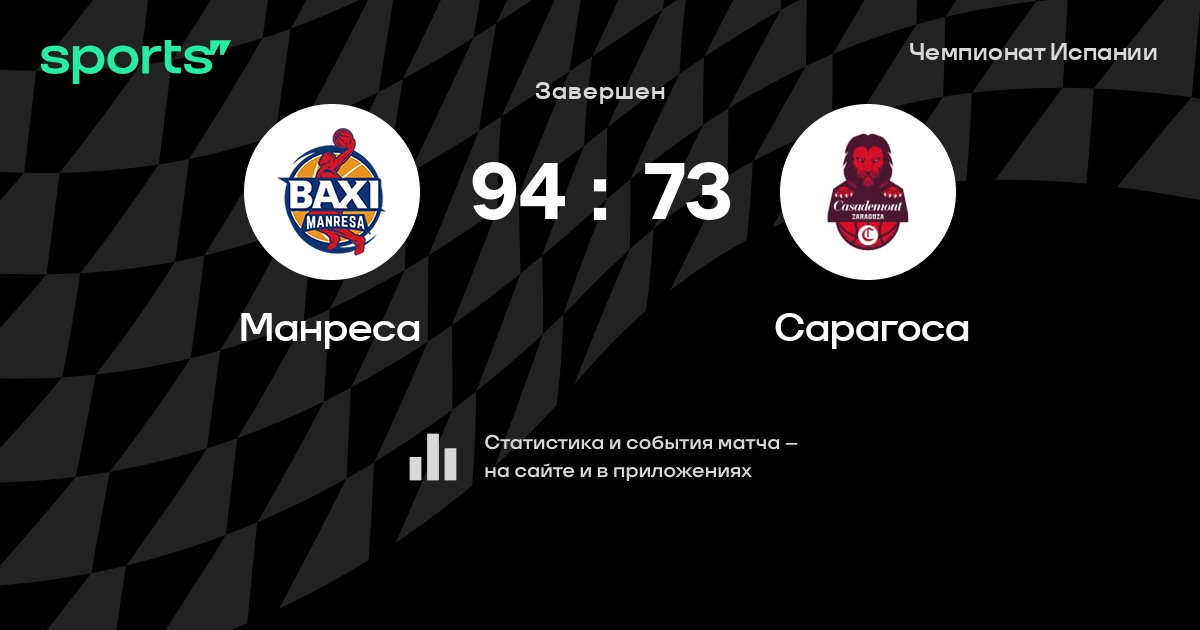 В прошедшем матче в рамках турнира Чемпионат Испании состоялась встреча команд Манреса - Сарагоса в городе Manresa на стадионе Pavelló Nou Congost