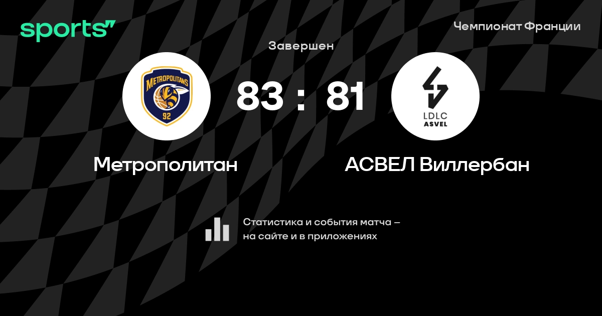 В прошедшем матче в рамках турнира Чемпионат Франции состоялась встреча команд Метрополитан - АСВЕЛ Виллербан в городе на стадионе Palais des Sports Marcel Cerdan