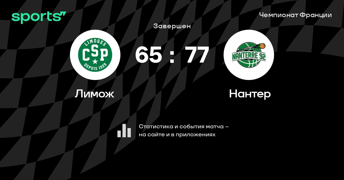 В прошедшем матче в рамках турнира Чемпионат Франции состоялась встреча команд Лимож - Нантер в городе на стадионе Palais des sports de Beaublanc