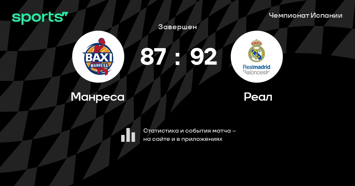 В прошедшем матче в рамках турнира Чемпионат Испании состоялась встреча команд Манреса - Реал в городе Manresa на стадионе Pavelló Nou Congost
