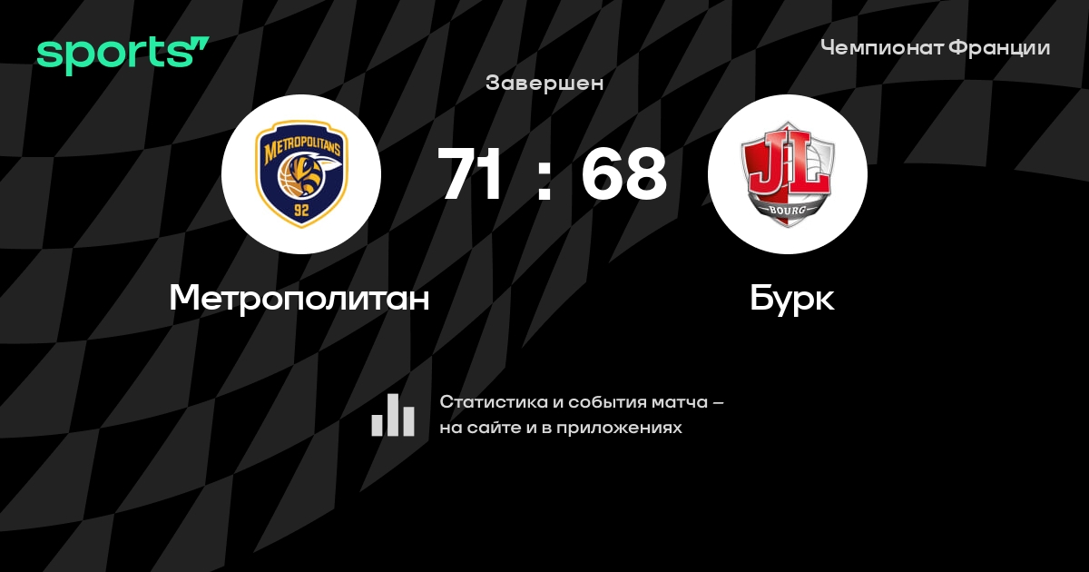 В прошедшем матче в рамках турнира Чемпионат Франции состоялась встреча команд Метрополитан - Бурк в городе на стадионе Palais des Sports Marcel Cerdan