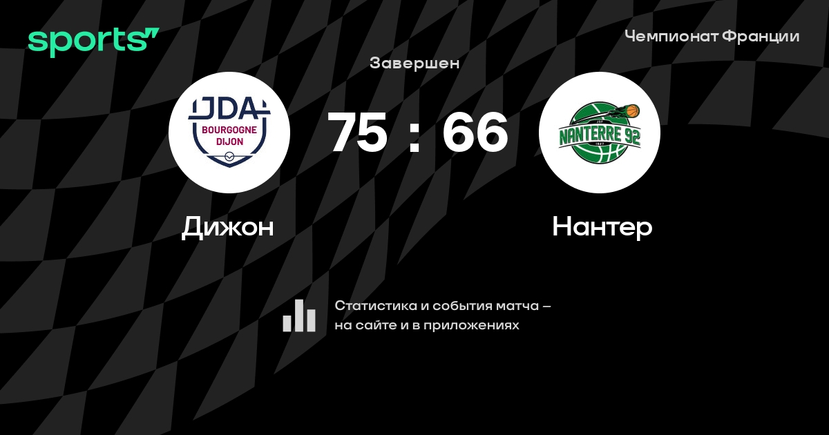 В прошедшем матче в рамках турнира Чемпионат Франции состоялась встреча команд Дижон - Нантер в городе на стадионе Palais des Sports Jean-Michel Geoffroy