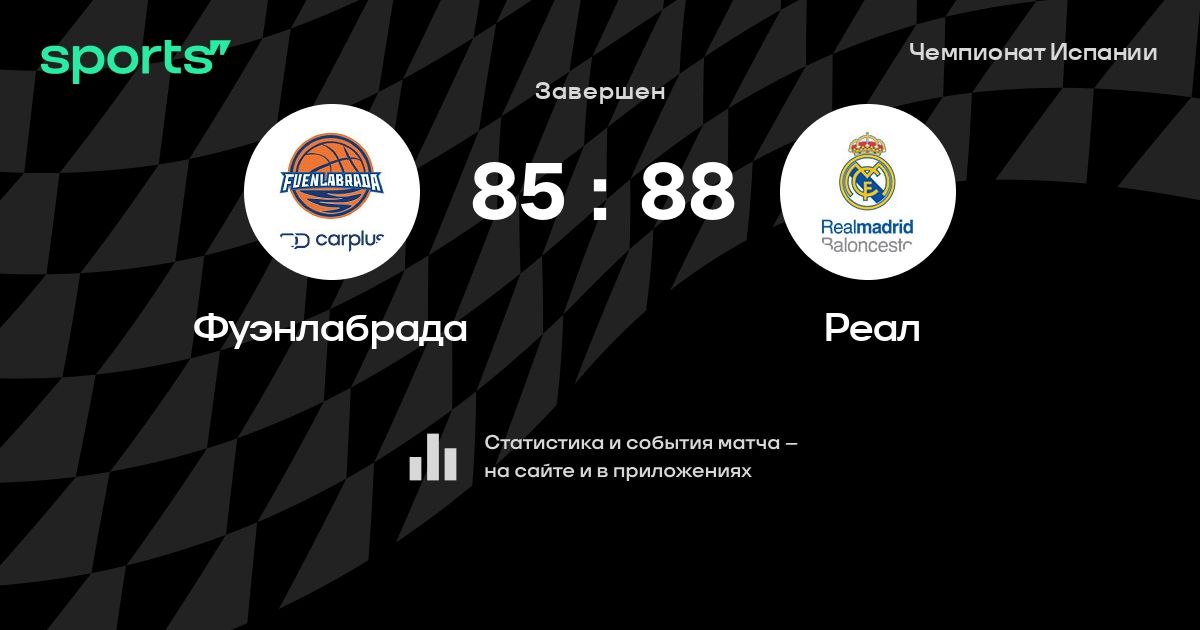 В прошедшем матче в рамках турнира Чемпионат Испании состоялась встреча команд Фуэнлабрада - Реал в городе Фуэнлабрада (Испания) на стадионе Полидепортиво Фернандо Мартин (вместимость - 5700)