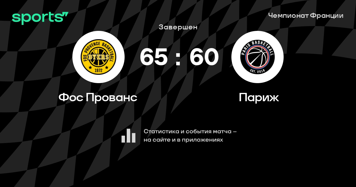 В прошедшем матче в рамках турнира Чемпионат Франции состоялась встреча команд Фос Прованс - Париж в городе на стадионе Halle des sports Parsemain