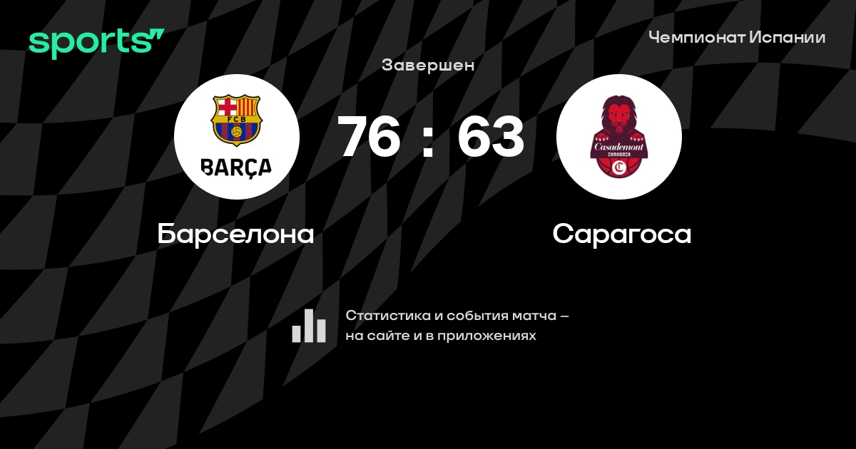 В прошедшем матче в рамках турнира Чемпионат Испании состоялась встреча команд Барселона - Сарагоса в городе Барселона (Испания) на стадионе Палау Блауграна (вместимость - 7585)