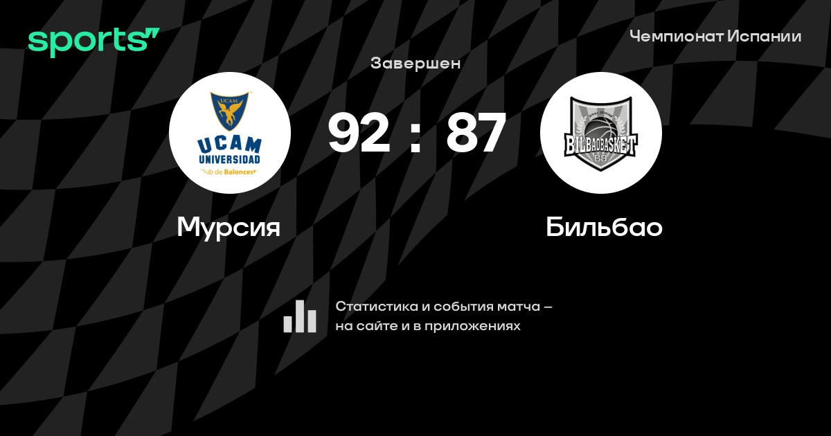 В прошедшем матче в рамках турнира Чемпионат Испании состоялась встреча команд Мурсия - Бильбао в городе Murcia на стадионе Palacio Municipal De Deportes