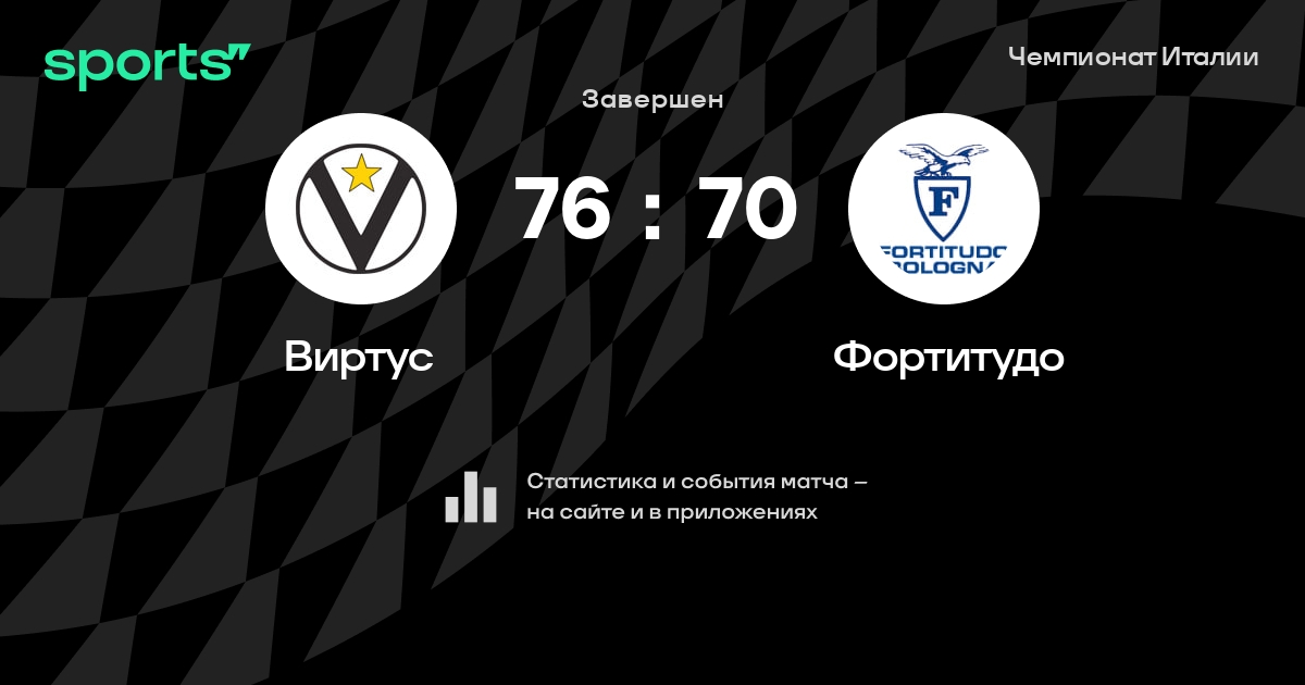В прошедшем матче в рамках турнира Чемпионат Италии состоялась встреча команд Виртус - Фортитудо в городе Болонья (Италия) на стадионе Виртус Арена (вместимость - 9980)
