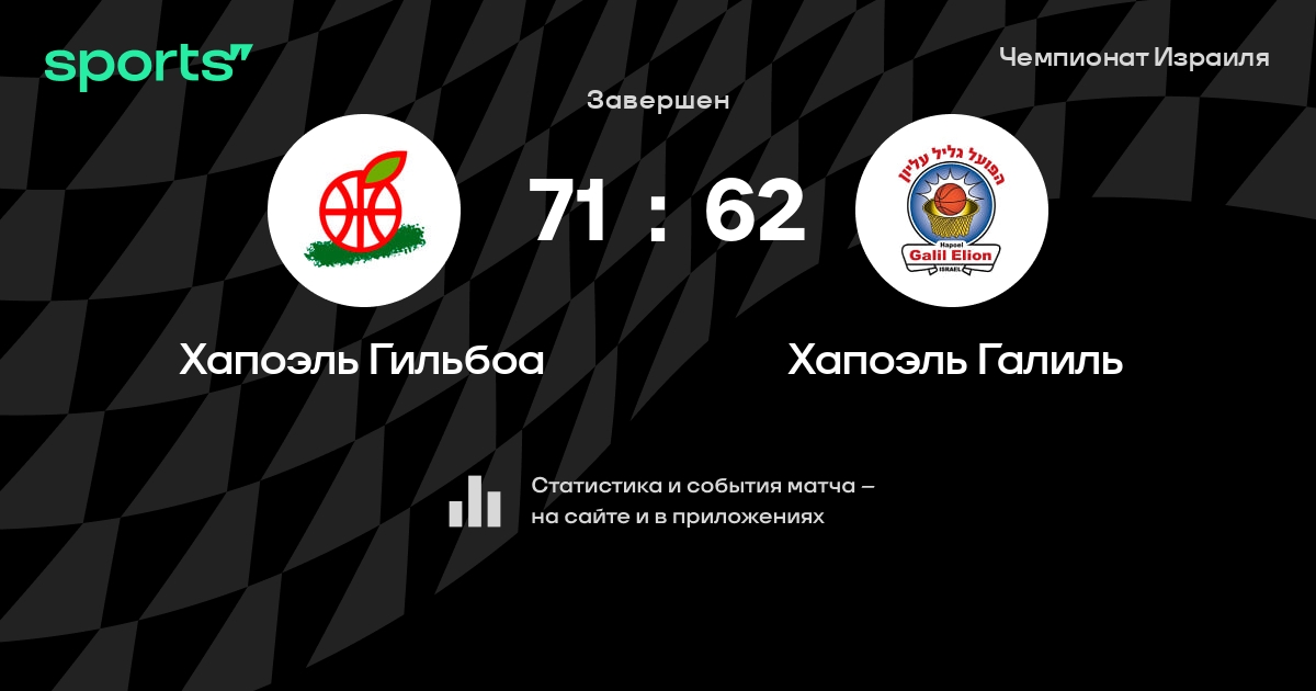 В прошедшем матче в рамках турнира Чемпионат Израиля состоялась встреча команд Хапоэль Гильбоа - Хапоэль Галиль в городе Gan Ner на стадионе Gan Ner Sports Hall