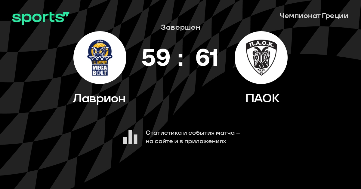 В прошедшем матче в рамках турнира Чемпионат Греции состоялась встреча команд Лаврион - ПАОК в городе на стадионе Kleisto Gymnastirio Lavriou