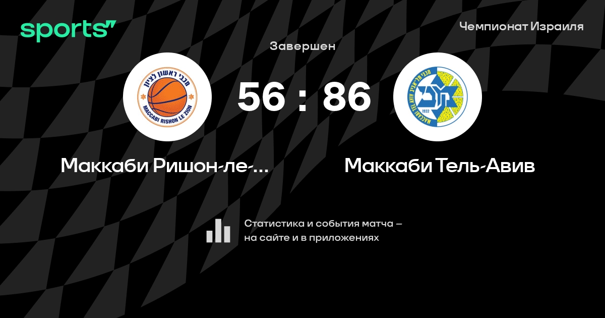 В прошедшем матче в рамках турнира Чемпионат Израиля состоялась встреча команд Маккаби Ришон-ле-Цион - Маккаби Тель-Авив в городе Rishon Le Zion на стадионе Beit Maccabi