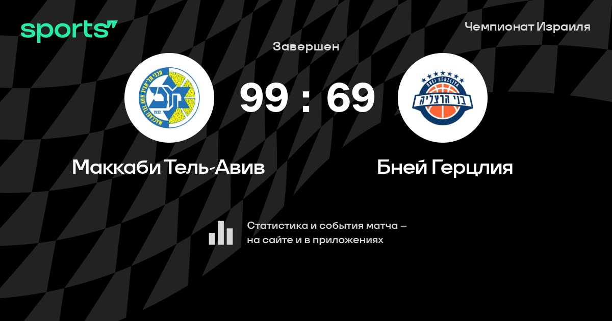 В прошедшем матче в рамках турнира Чемпионат Израиля состоялась встреча команд Маккаби Тель-Авив - Бней Герцлия в городе Тель-Авив (Израиль) на стадионе Менора-Мивтахим Арена (вместимость - 11700)