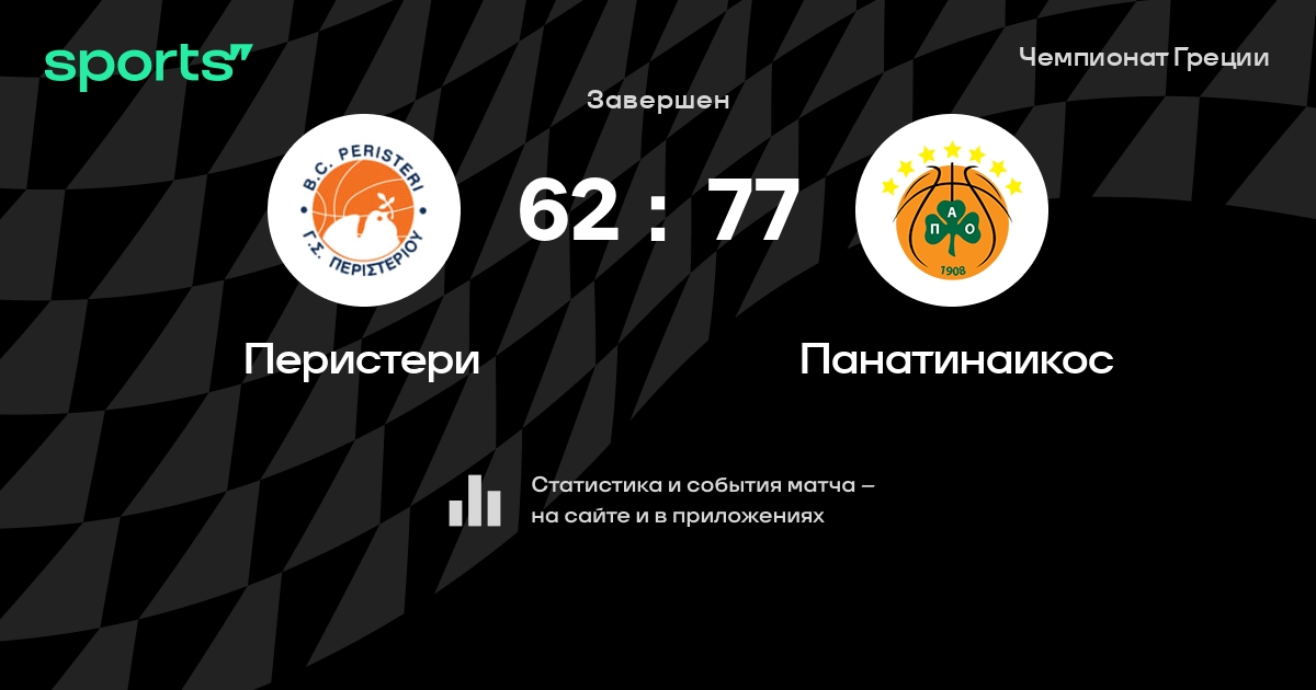 В прошедшем матче в рамках турнира Чемпионат Греции состоялась встреча команд Перистери - Панатинаикос в городе на стадионе Kleisto Andreas Papandreou