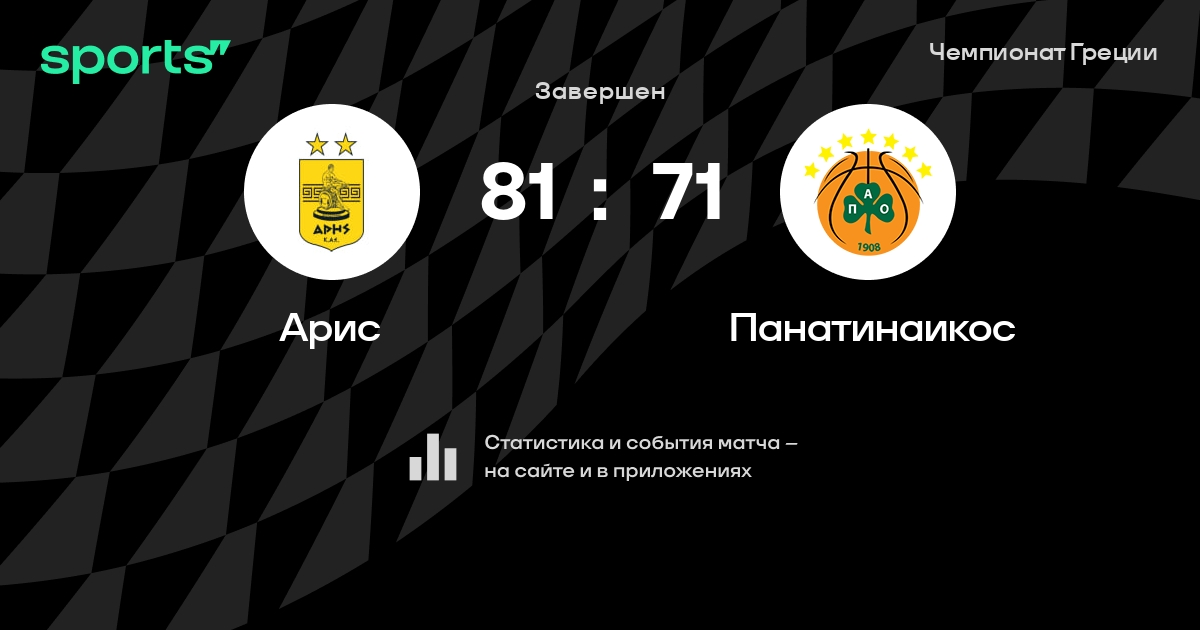 В прошедшем матче в рамках турнира Чемпионат Греции состоялась встреча команд Арис - Панатинаикос в городе на стадионе Sala Alexandreio Melathron Nikos Galis