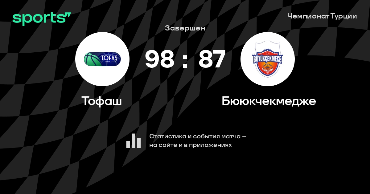 В прошедшем матче в рамках турнира Чемпионат Турции состоялась встреча команд Тофаш - Бююкчекмедже в городе на стадионе Tofaş Spor Salonu