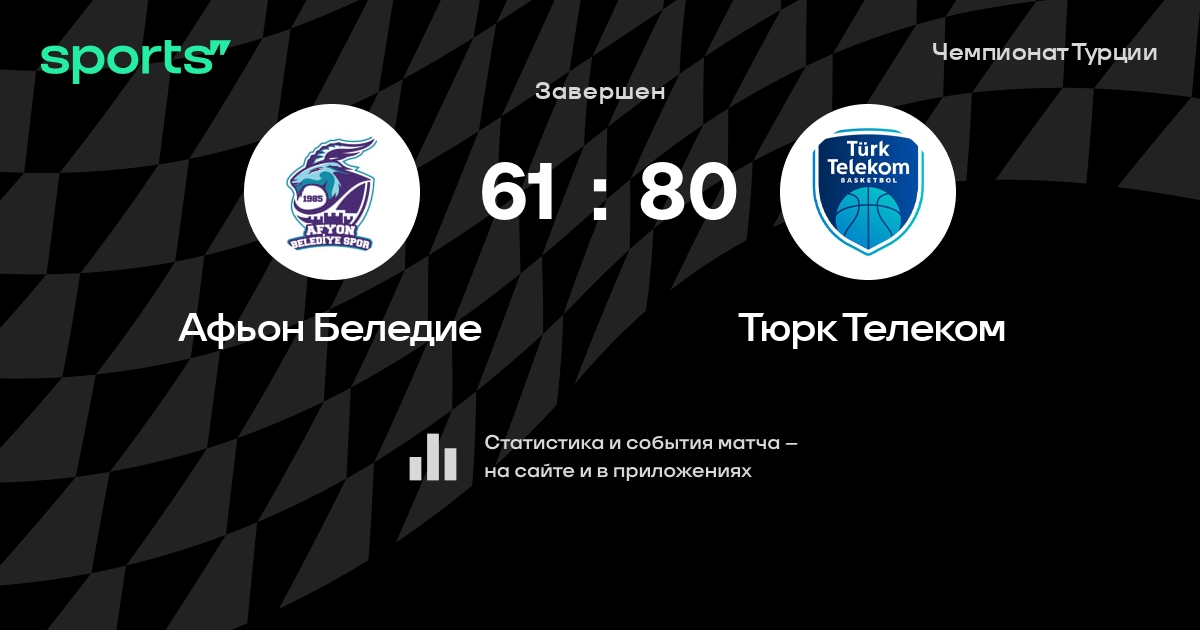 В прошедшем матче в рамках турнира Чемпионат Турции состоялась встреча команд Афьон Беледие - Тюрк Телеком в городе Afyonkarahisar на стадионе Prof. Dr. Veysel Eroğlu Spor Salonu