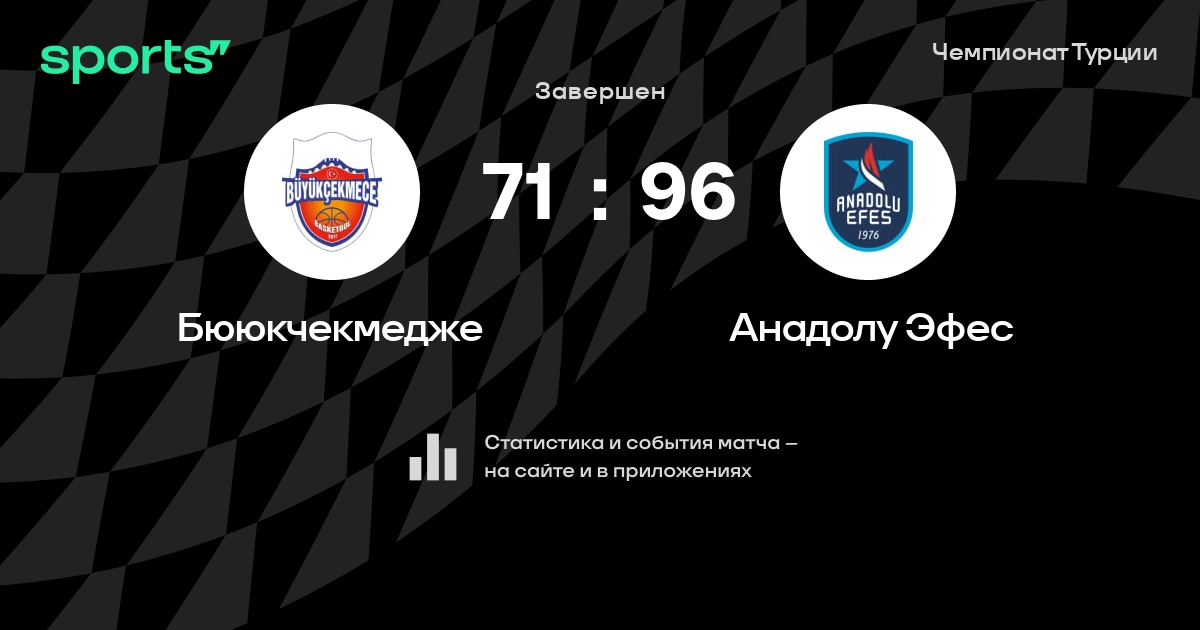 В прошедшем матче в рамках турнира Чемпионат Турции состоялась встреча команд Бююкчекмедже - Анадолу Эфес в городе на стадионе Gazanfer Bilge Spor Salonu