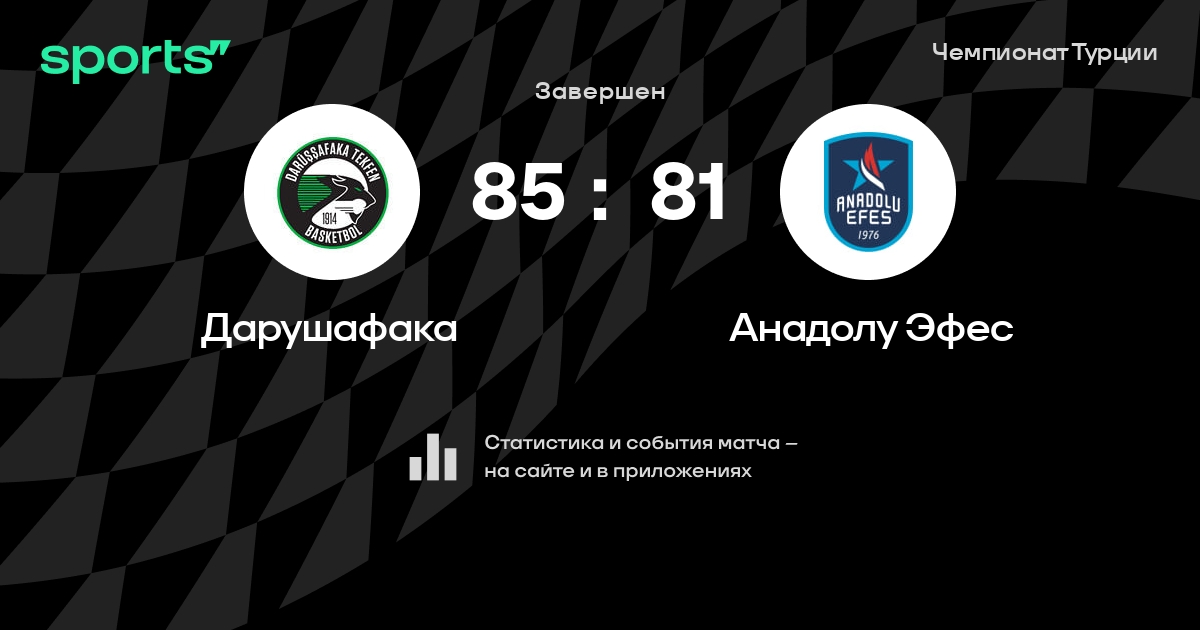 В прошедшем матче в рамках турнира Чемпионат Турции состоялась встреча команд Дарушафака - Анадолу Эфес в городе на стадионе Darüşşafaka Ayhan Şahenk S.S.