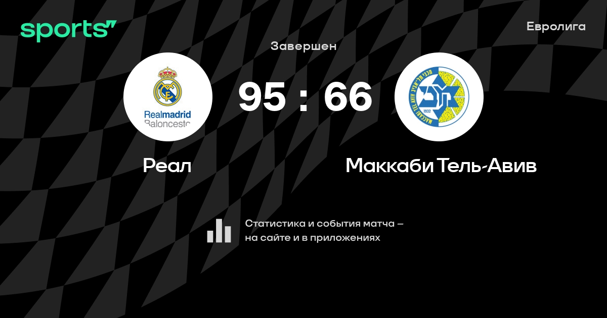 В прошедшем матче в рамках турнира Евролига (Четвертьфинал) состоялась встреча команд Реал - Маккаби Тель-Авив в городе Мадрид (Испания) на стадионе Мовистар Арена (вместимость - 15000)