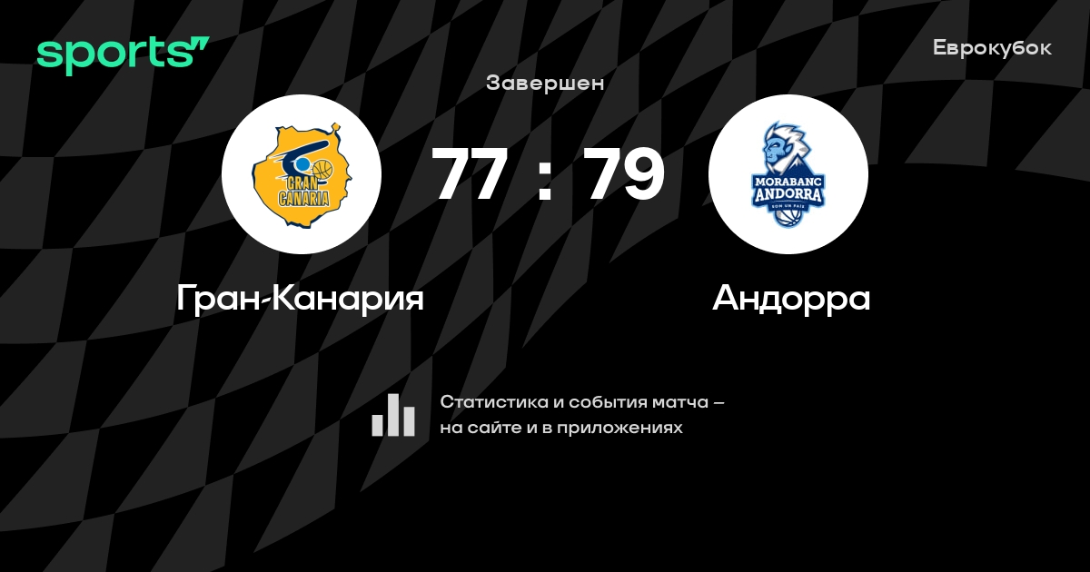 В прошедшем матче в рамках турнира Еврокубок (Четвертьфинал) состоялась встреча команд Гран-Канария - Андорра в городе Лас-Пальмас-де-Гран-Канария (Испания) на стадионе Гран-Канария Арена (вместимость - 9865)