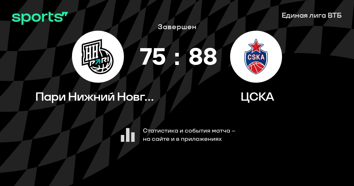 В прошедшем матче в рамках турнира Единая лига ВТБ (Четвертьфинал) состоялась встреча команд Пари Нижний Новгород - ЦСКА в городе Нижний Новгород (Россия) на стадионе КРК Нагорный (вместимость - 5600)