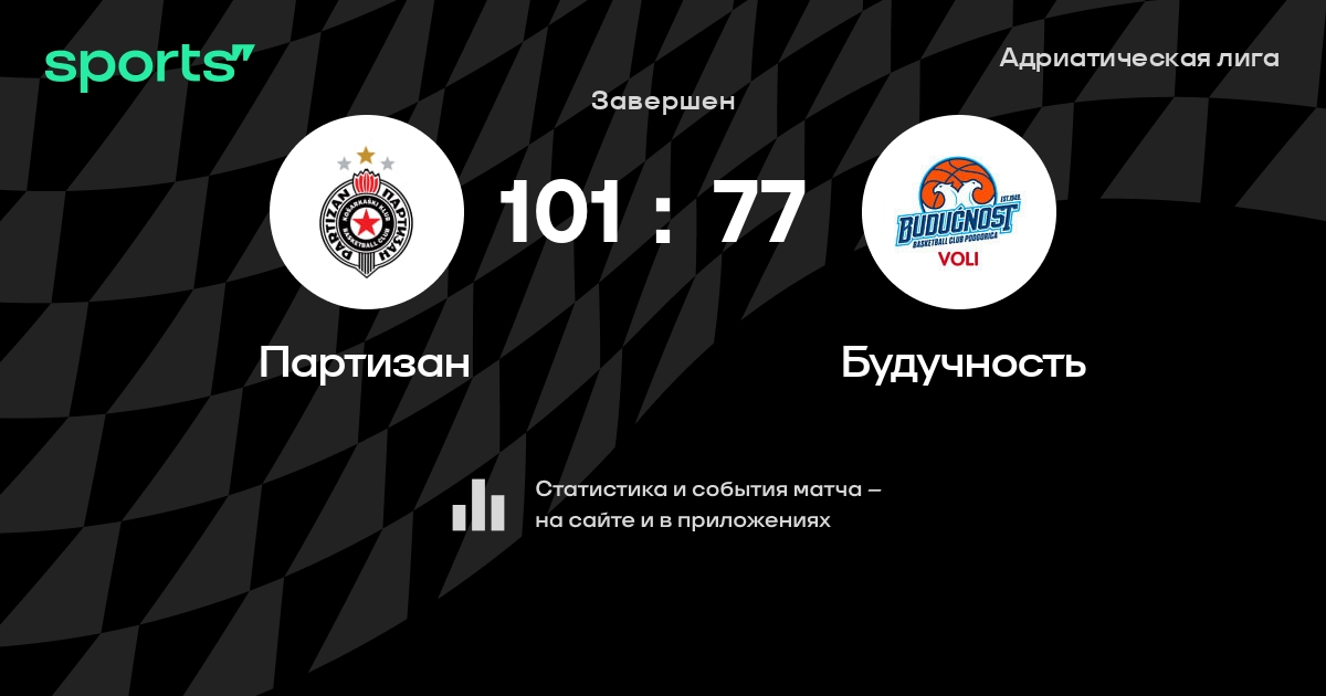 В прошедшем матче в рамках турнира Адриатическая лига (Полуфинал) состоялась встреча команд Партизан - Будучность в городе Белград (Сербия) на стадионе Александар Николич Холл (вместимость - 7000)