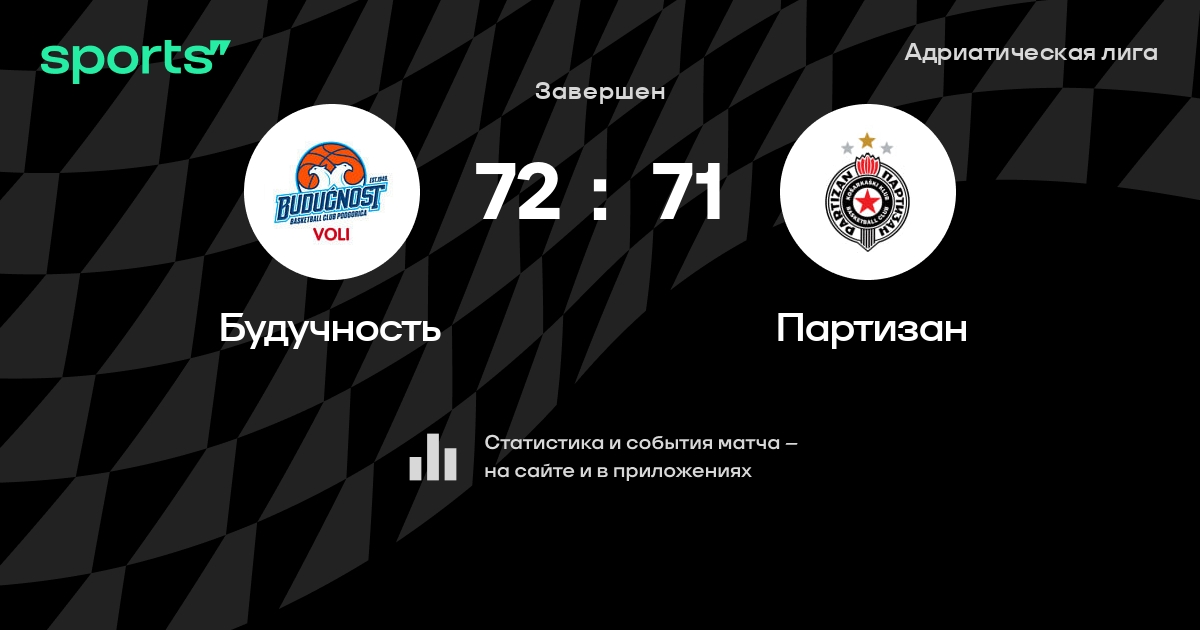 В прошедшем матче в рамках турнира Адриатическая лига (Полуфинал) состоялась встреча команд Будучность - Партизан в городе Подгорица (Черногория) на стадионе Морача (вместимость - 6000)