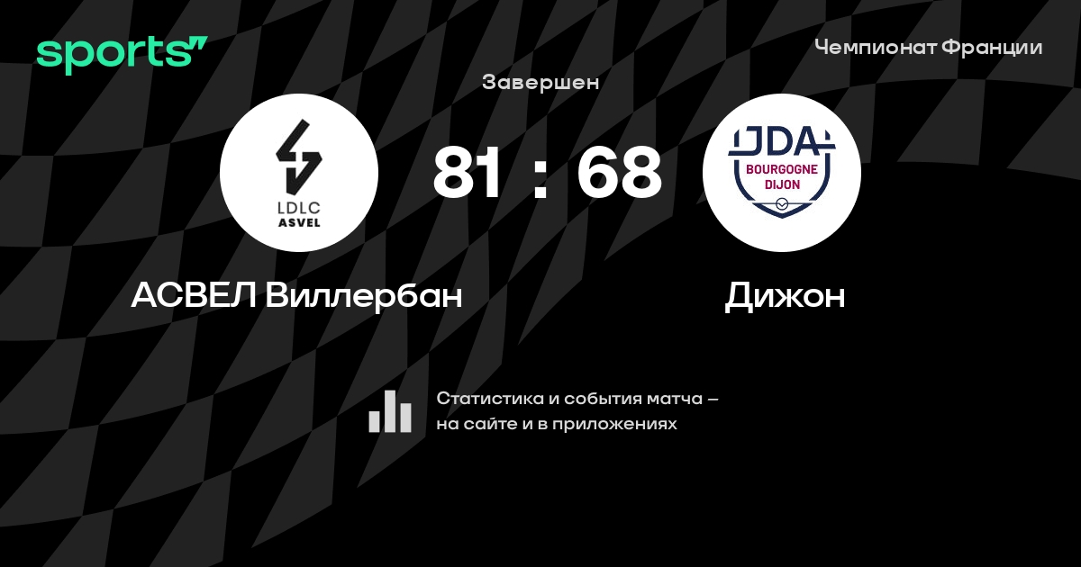 В прошедшем матче в рамках турнира Чемпионат Франции (Полуфинал) состоялась встреча команд АСВЕЛ Виллербан - Дижон в городе Виллербанн (Франция) на стадионе Астробаль (вместимость - 5556)