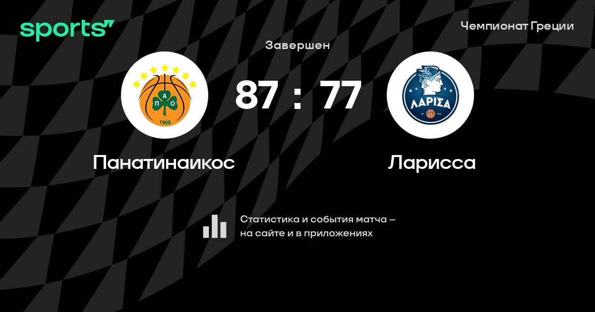 В прошедшем матче в рамках турнира Чемпионат Греции (Полуфинал) состоялась встреча команд Панатинаикос - Ларисса в городе Афины (Греция) на стадионе Олимпийский спортивный центр (O.A.K.A.) (вместимость - 19250)