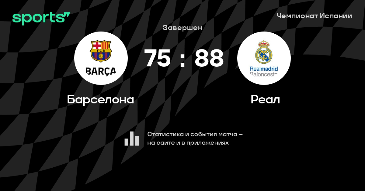 В прошедшем матче в рамках турнира Чемпионат Испании (Финал) состоялась встреча команд Барселона - Реал в городе Барселона (Испания) на стадионе Палау Блауграна (вместимость - 7585)