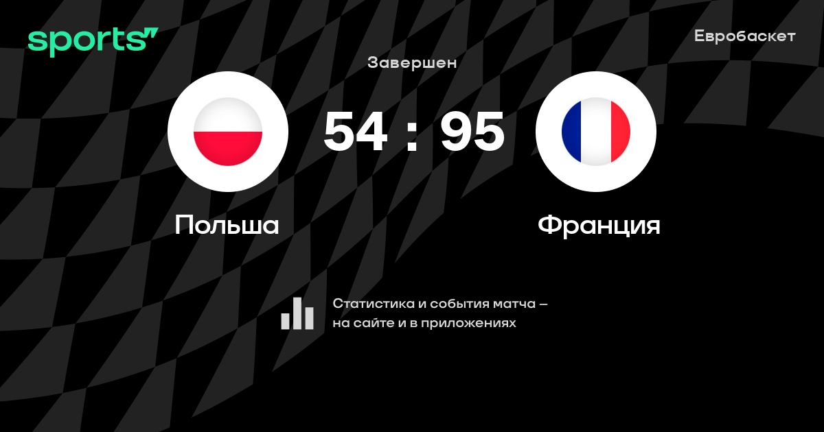 В прошедшем матче в рамках турнира Евробаскет (Полуфинал) состоялась встреча команд Польша - Франция в городе Берлин (Германия) на стадионе Убер Арена (вместимость - 16000)