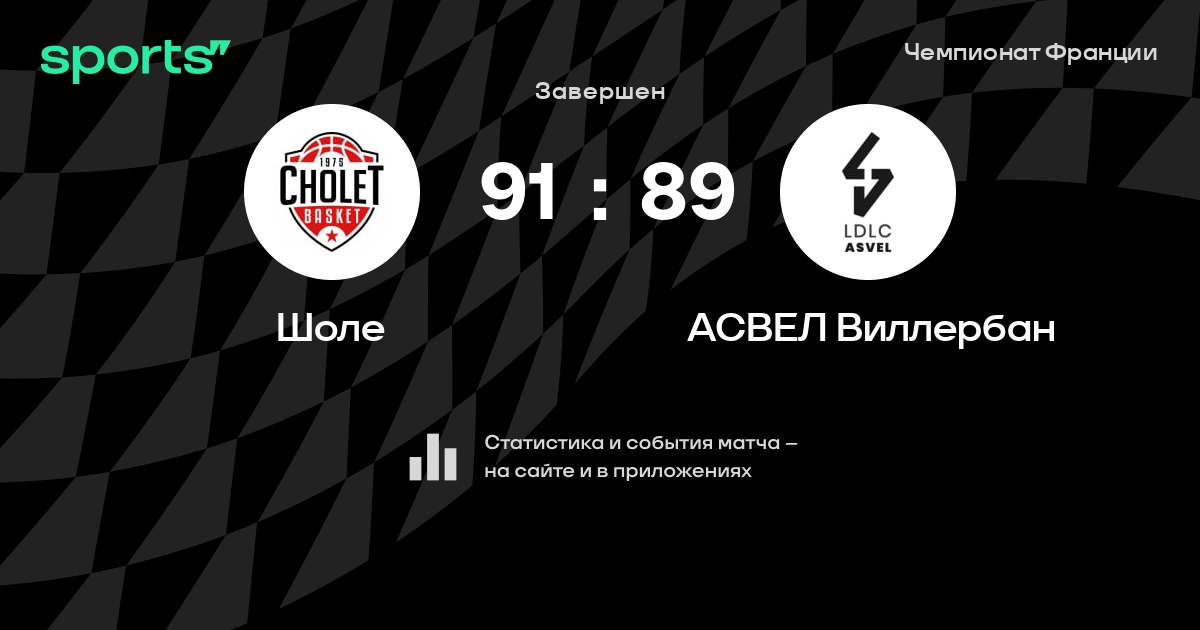 В прошедшем матче в рамках турнира Чемпионат Франции состоялась встреча команд Шоле - АСВЕЛ Виллербан в городе на стадионе Salle de la Meilleraie