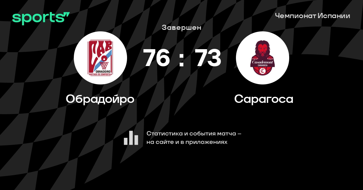 В прошедшем матче в рамках турнира Чемпионат Испании состоялась встреча команд Обрадойро - Сарагоса в городе Santiago de Compostela на стадионе Pabellón Multiusos Fontes do Sar
