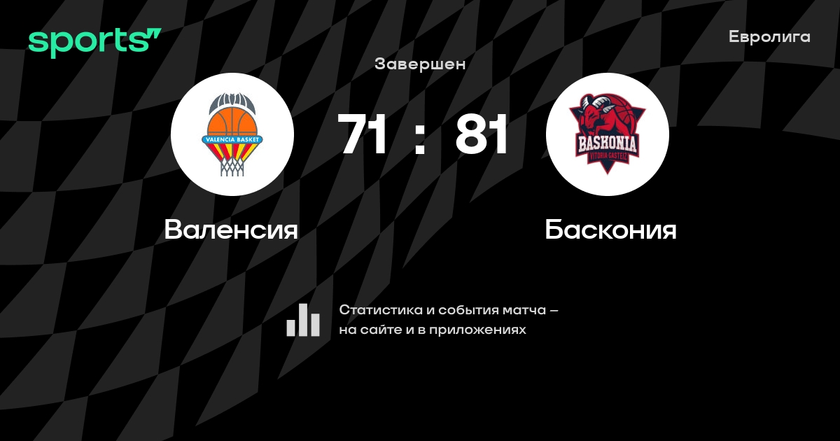 В прошедшем матче в рамках турнира Евролига состоялась встреча команд Валенсия - Баскония в городе Валенсия (Испания) на стадионе Ла Фонтета (вместимость - 9000)