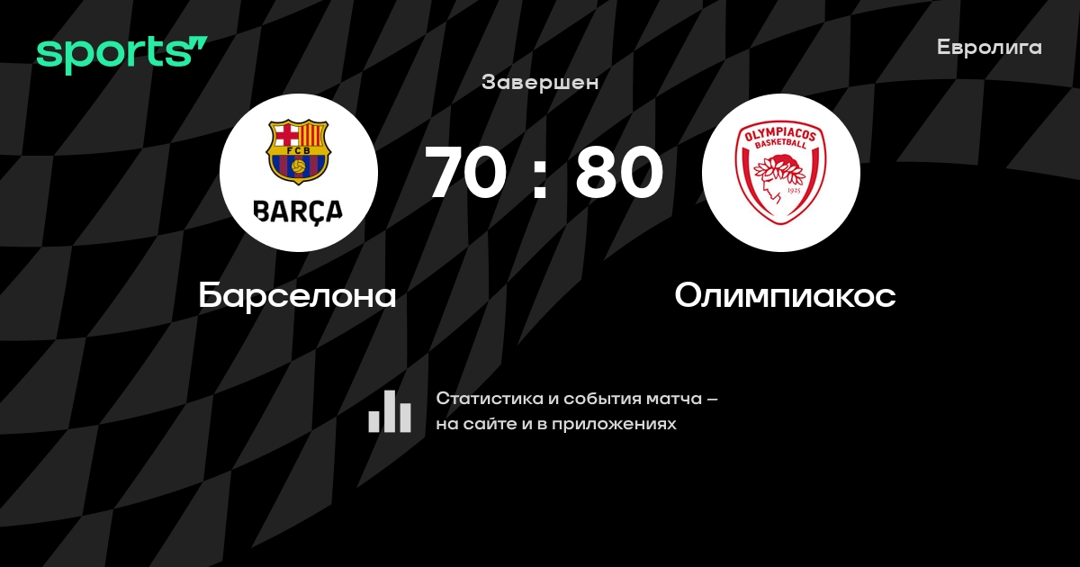 В прошедшем матче в рамках турнира Евролига состоялась встреча команд Барселона - Олимпиакос в городе Барселона (Испания) на стадионе Палау Блауграна (вместимость - 7585)