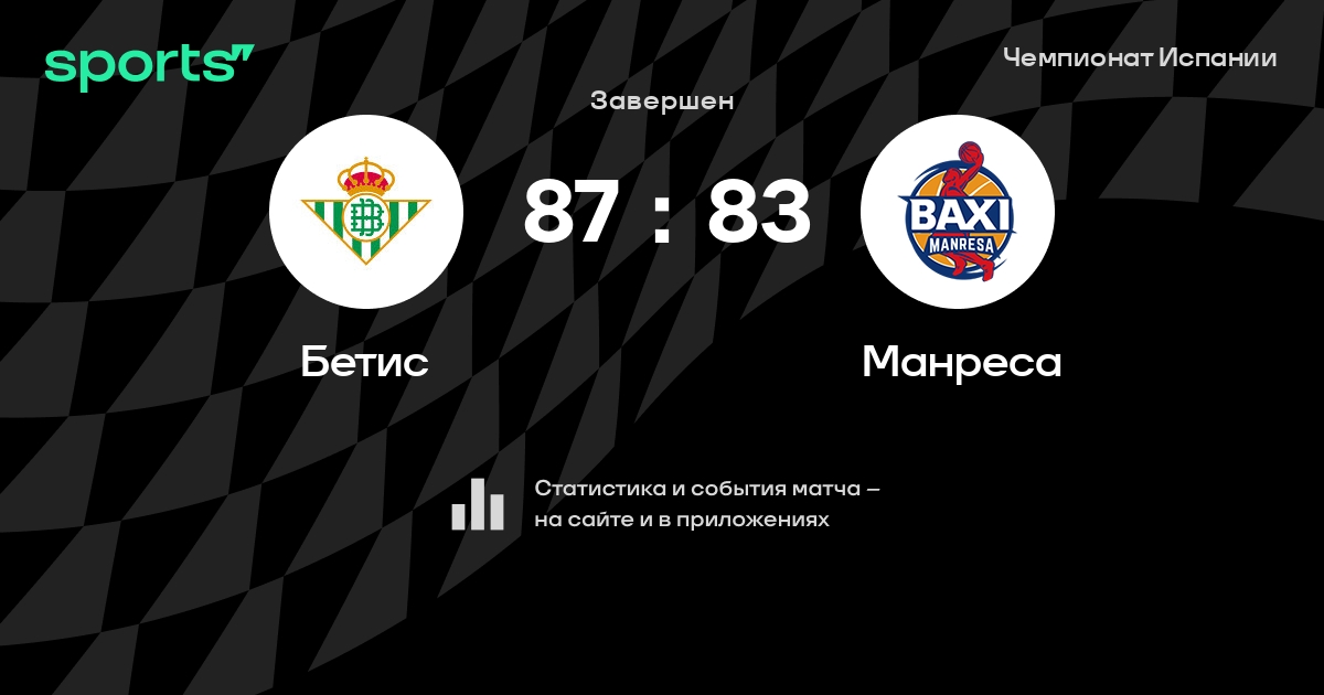 В прошедшем матче в рамках турнира Чемпионат Испании состоялась встреча команд Бетис - Манреса в городе на стадионе Palacio Municipal Deportes San Pablo