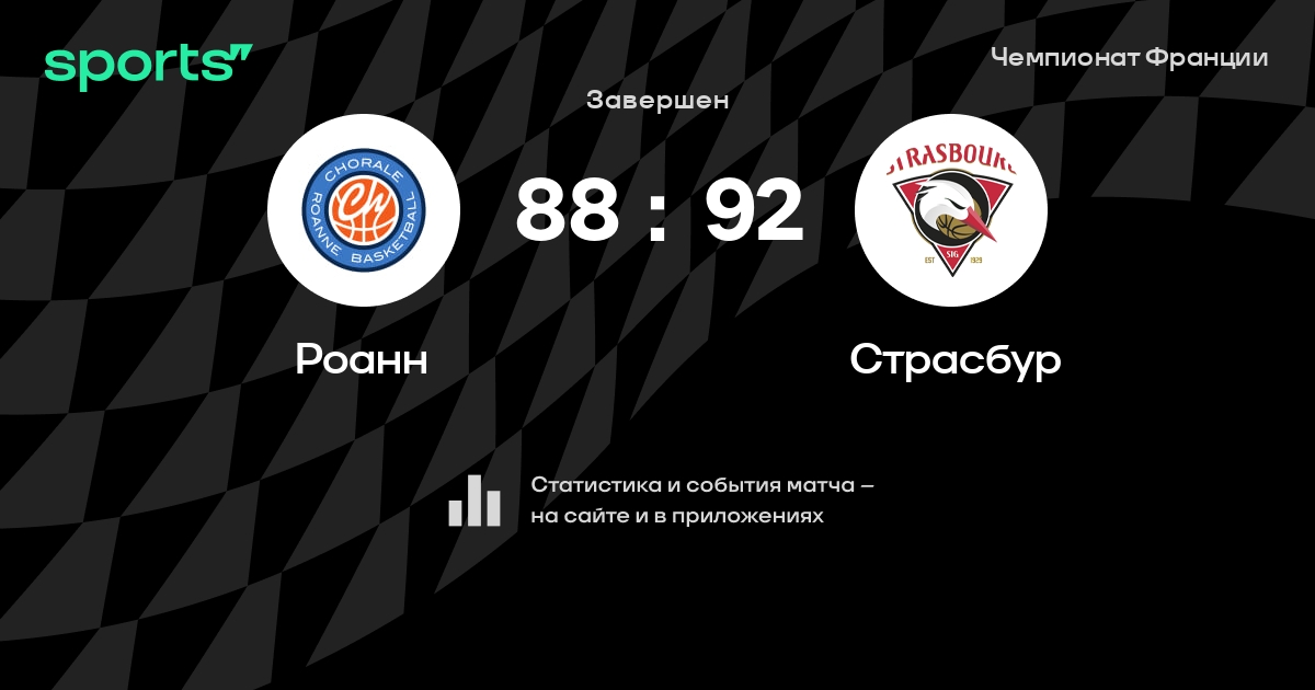 В прошедшем матче в рамках турнира Чемпионат Франции состоялась встреча команд Роанн - Страсбур в городе на стадионе Halle André-Vacheresse