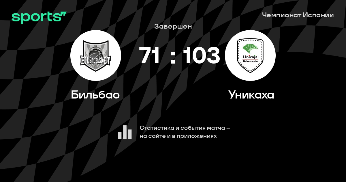 В прошедшем матче в рамках турнира Чемпионат Испании состоялась встреча команд Бильбао - Уникаха в городе Бильбао (Испания) на стадионе Бильбао Арена (вместимость - 10014)