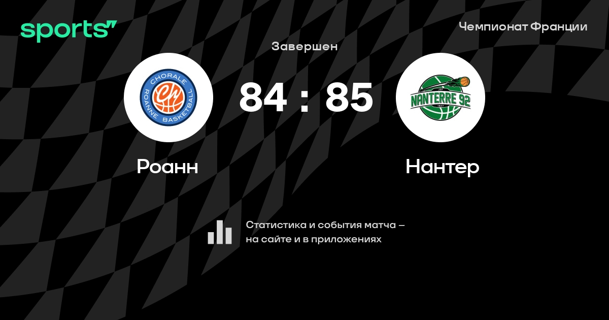 В прошедшем матче в рамках турнира Чемпионат Франции состоялась встреча команд Роанн - Нантер в городе на стадионе Halle André-Vacheresse