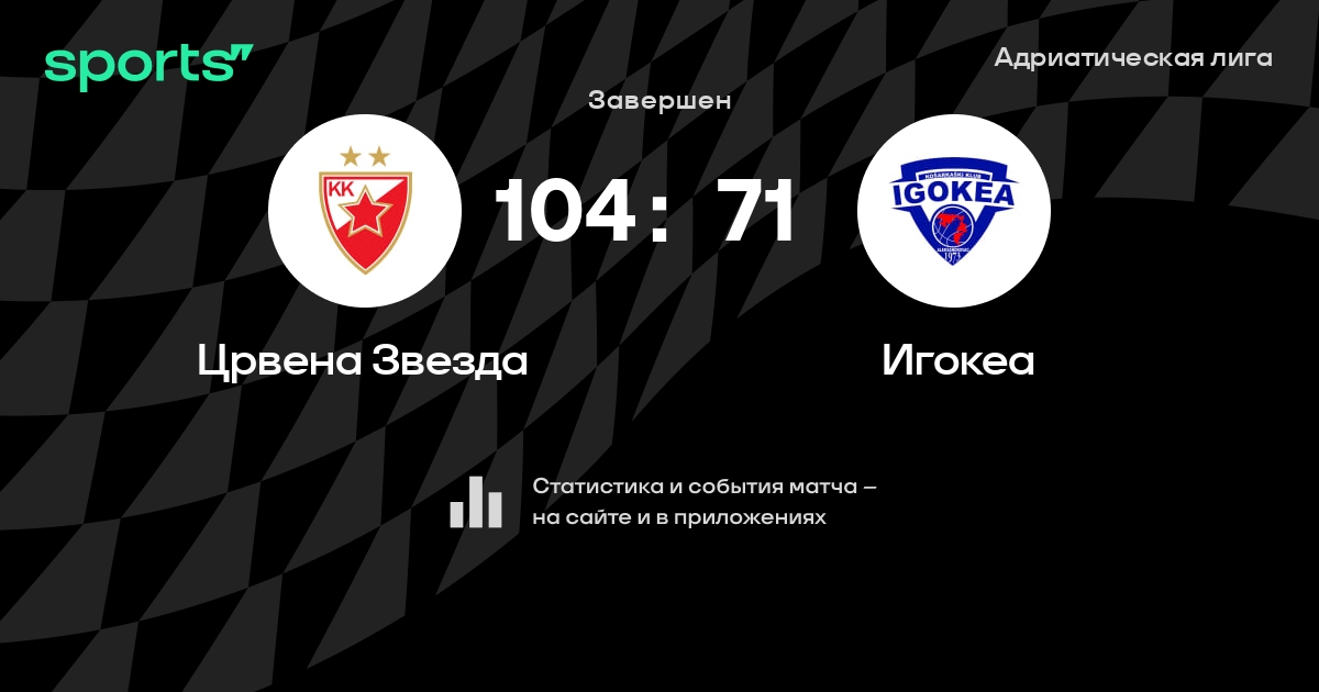 В прошедшем матче в рамках турнира Адриатическая лига состоялась встреча команд Црвена Звезда - Игокеа в городе Белград (Сербия) на стадионе Александар Николич Холл (вместимость - 7000)
