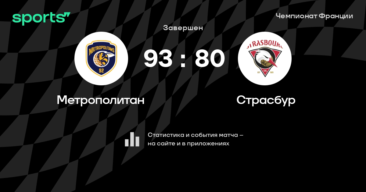 В прошедшем матче в рамках турнира Чемпионат Франции состоялась встреча команд Метрополитан - Страсбур в городе на стадионе Palais des Sports Marcel Cerdan
